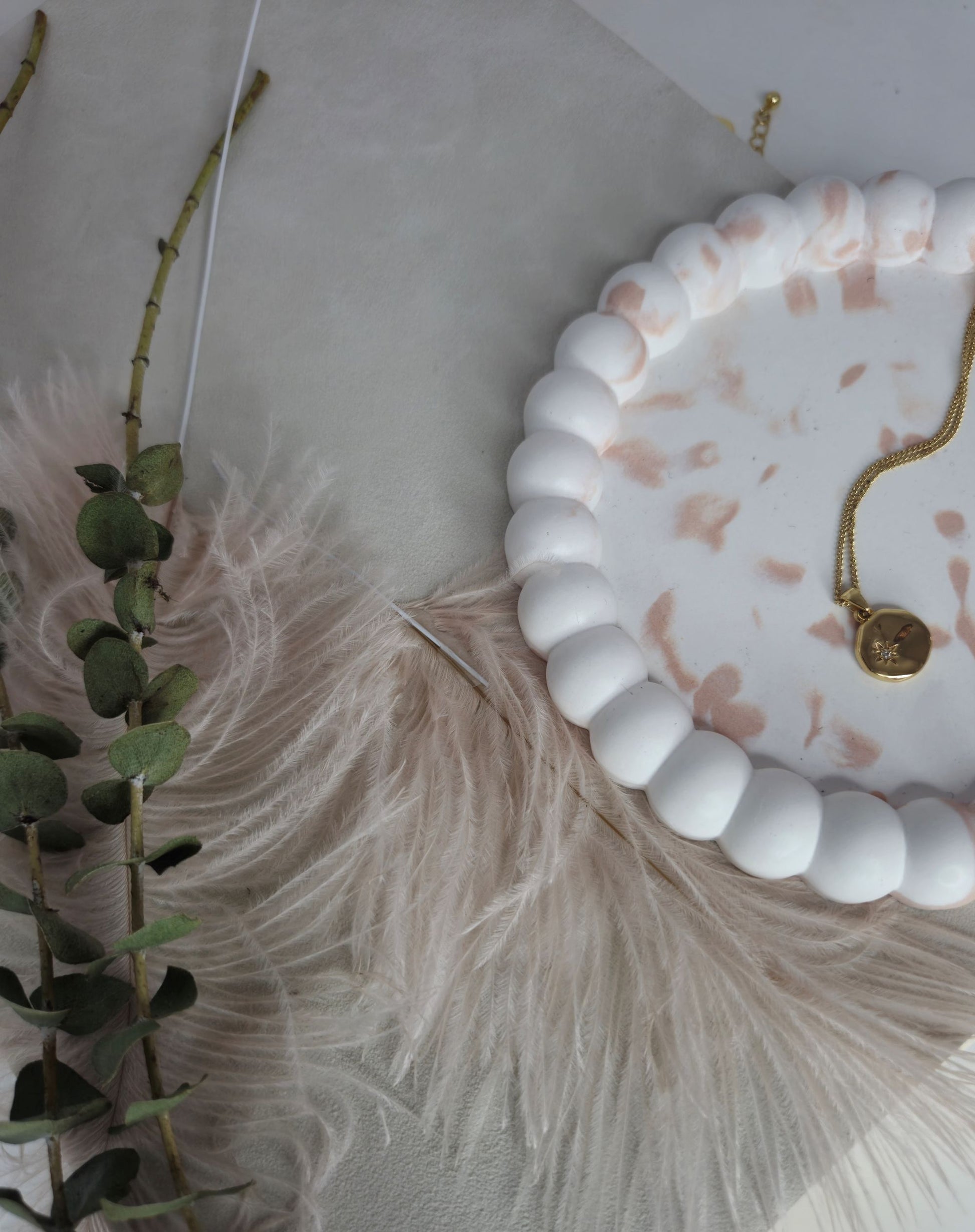 Diese elegante, handgefertigte Deko- Schale ist ein stilvoller Blickfang für dein Zuhause. Der feine Perlenrand verleiht der runden Schale eine besondere Struktur. Jedes Exemplar ist einzigartig.